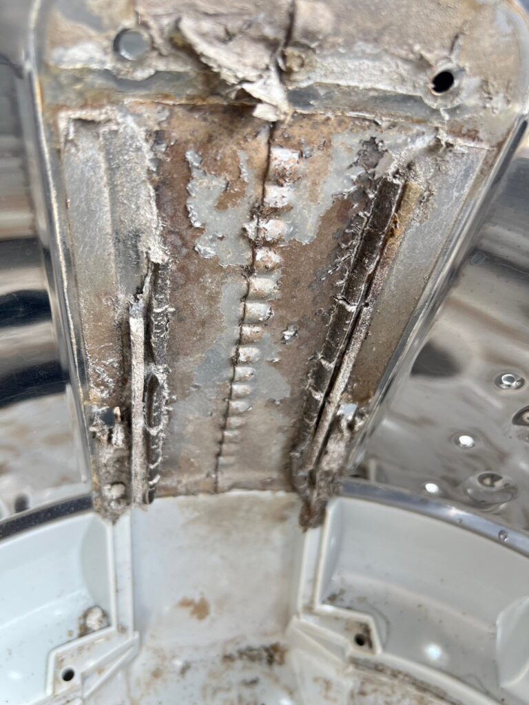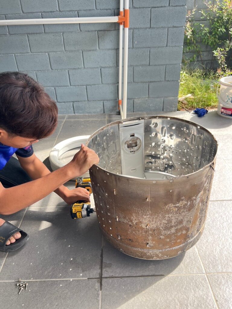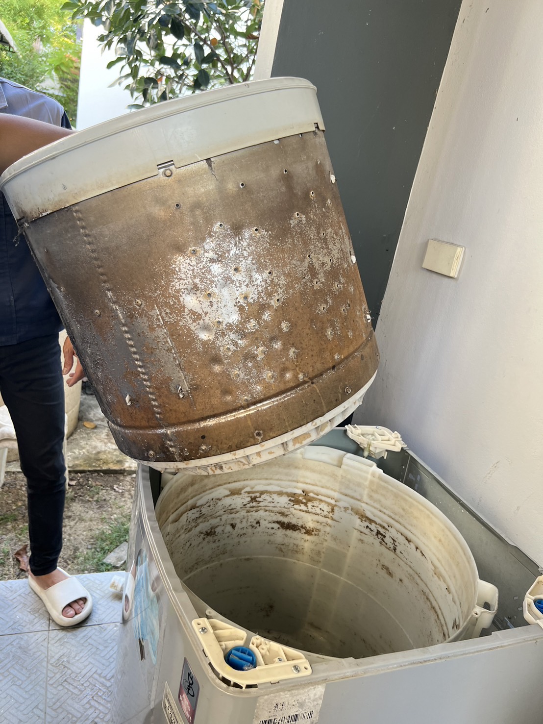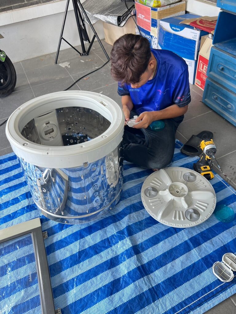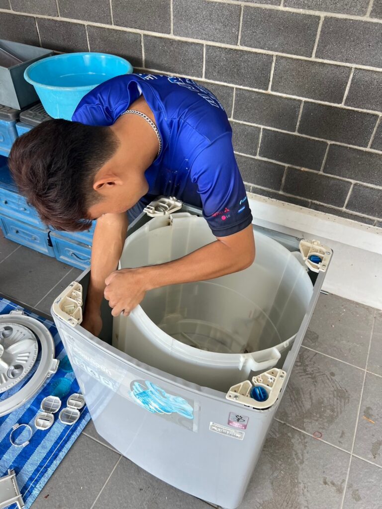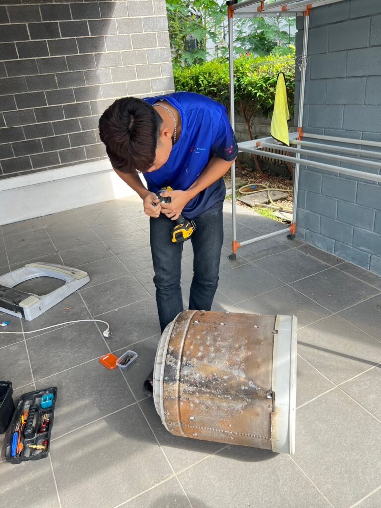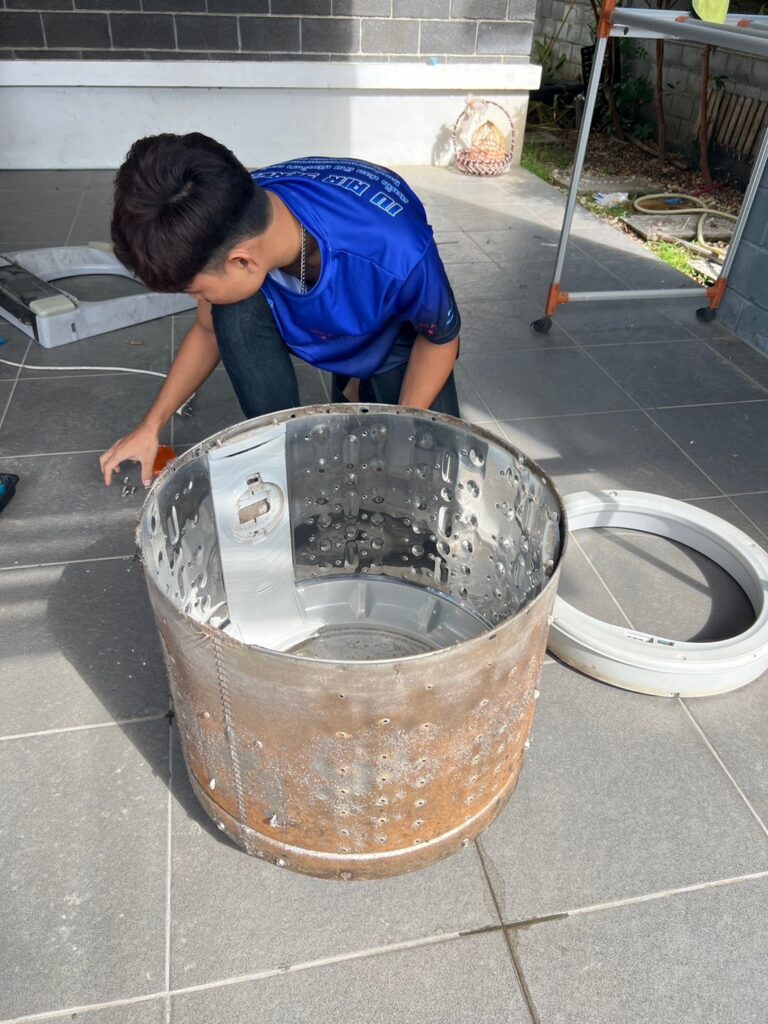 - กรณีพบปัญหาหินปูนเกาะ หรือ สนิม อันเกิดจากสภาพนํ้า และผงซักฝอก อากจเกิดความเสียหายจากการถอด อยู่นอกขอบเขตการรับประกัน จากงานบริการล้างเครื่องซักผ้า (ช่างจะชี้แจ้งลูกค้าก่อนดําเนินการถอด)