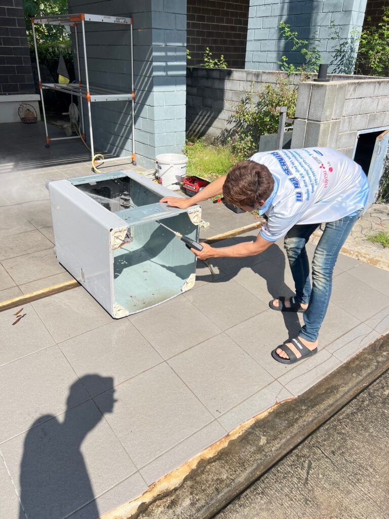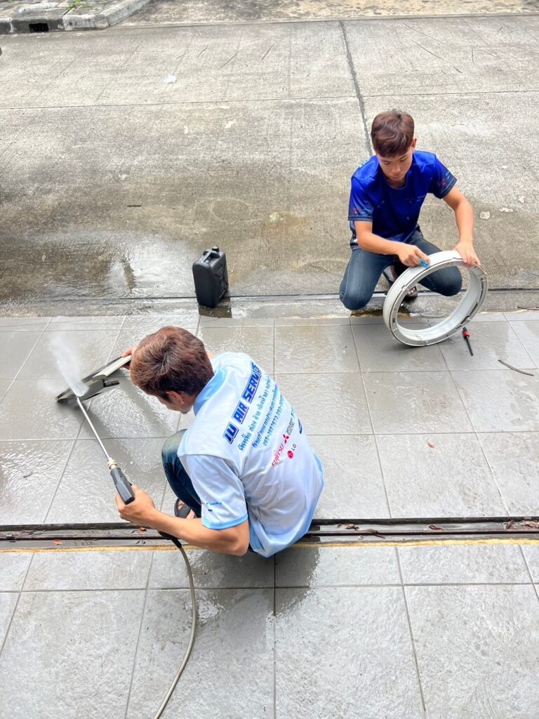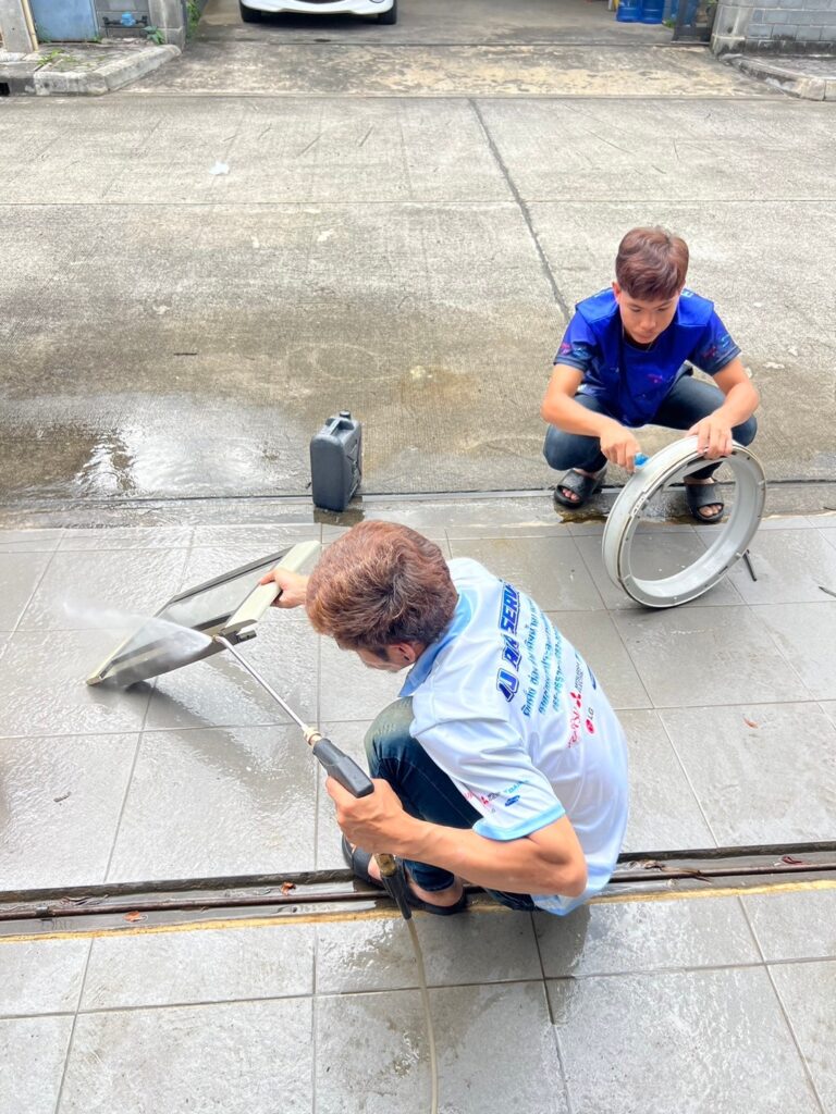 - กรณีหน้างานพื้นที่เล็กมาก ไม่สะดวกต่อการทํางาน เช่น งานคอนโดที่ไม่มีบริเวณให้ถอดอุปกรณ์และฉีดล้าง และจําเป็นต้องยกเครื่องไปทําการ ล้างนอกสถานที่ จะมีการคิดค่าใช้จ่ายเพิ่มเติม 500 บาท