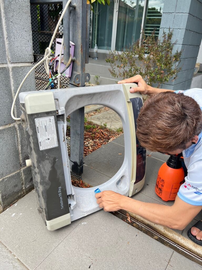 - กรณีขอบยางอยู่ในสภาพขึ้นรา ฝังแน่นในชั้นขอบยาง ส่งผลให้ไม่สามารถทําความสะอาดได้เหมือนใหม่ เพราะอาจจะทําให้ขอบยางฝาเครื่อง ซัก ฉีกขาดได้